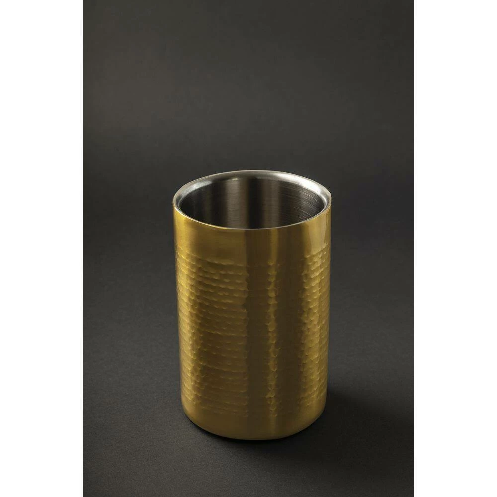 Serve your bottle of wine or champagne in our hammered gold wine cooler, while also adding elegance to your table setting. This handcrafted wine cooler is perfect for red wines, white wines, dessert wines, champagnes and more. Handcrafted with love by skilled artisans in rural India using high quality, ethically sourced and polished stainless steel.