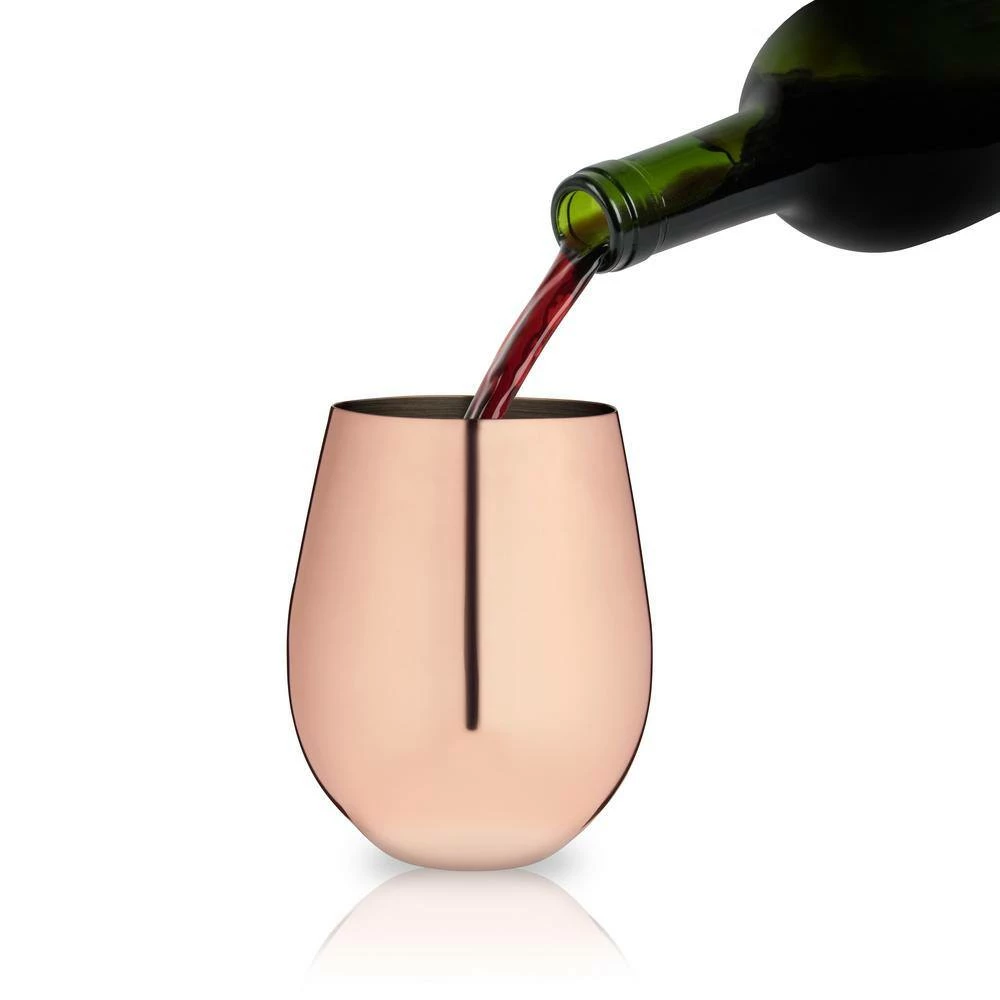 - Set of stylish copper wine glasses – stylish, shatterproof, and perfect for wine and cocktails, metal wine glasses make a striking statement add copper stemless wine glasses to your cocktail glassware collection