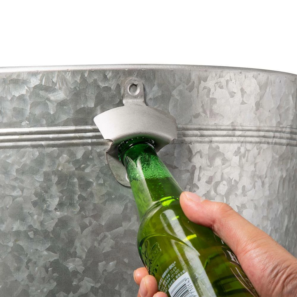 Made of galvanized metal and natural fir wood, this beverage tub features ring handles for easy transport and a built in bottle opener. Round container tub has ample storage space to accommodate beer, wine, champagne, soda, juice, or water, or any combination of bottles or cans. With a hearty, modern farmhouse look, the tub is perfect for home entertainment, wedding parties, backyard barbecues, catering companion for an outdoor party or an indoor bar. Super capacity 8 Gallon allows you to enjoy the party, and design of KD legs lets you save receive space when do not apply. The semi fixed page turning design is secure and prevents movement and dropping.