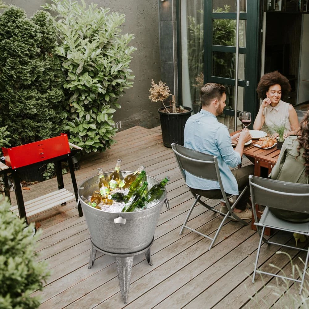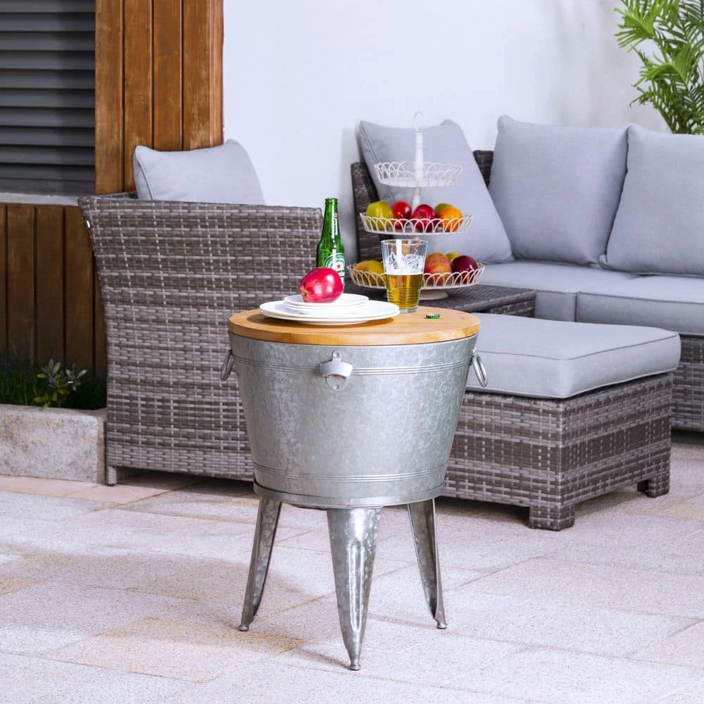 - Multi-purpose use: beverage tub, accent table and storage bucket