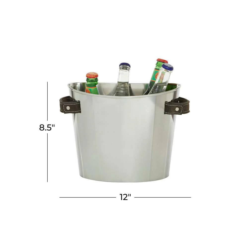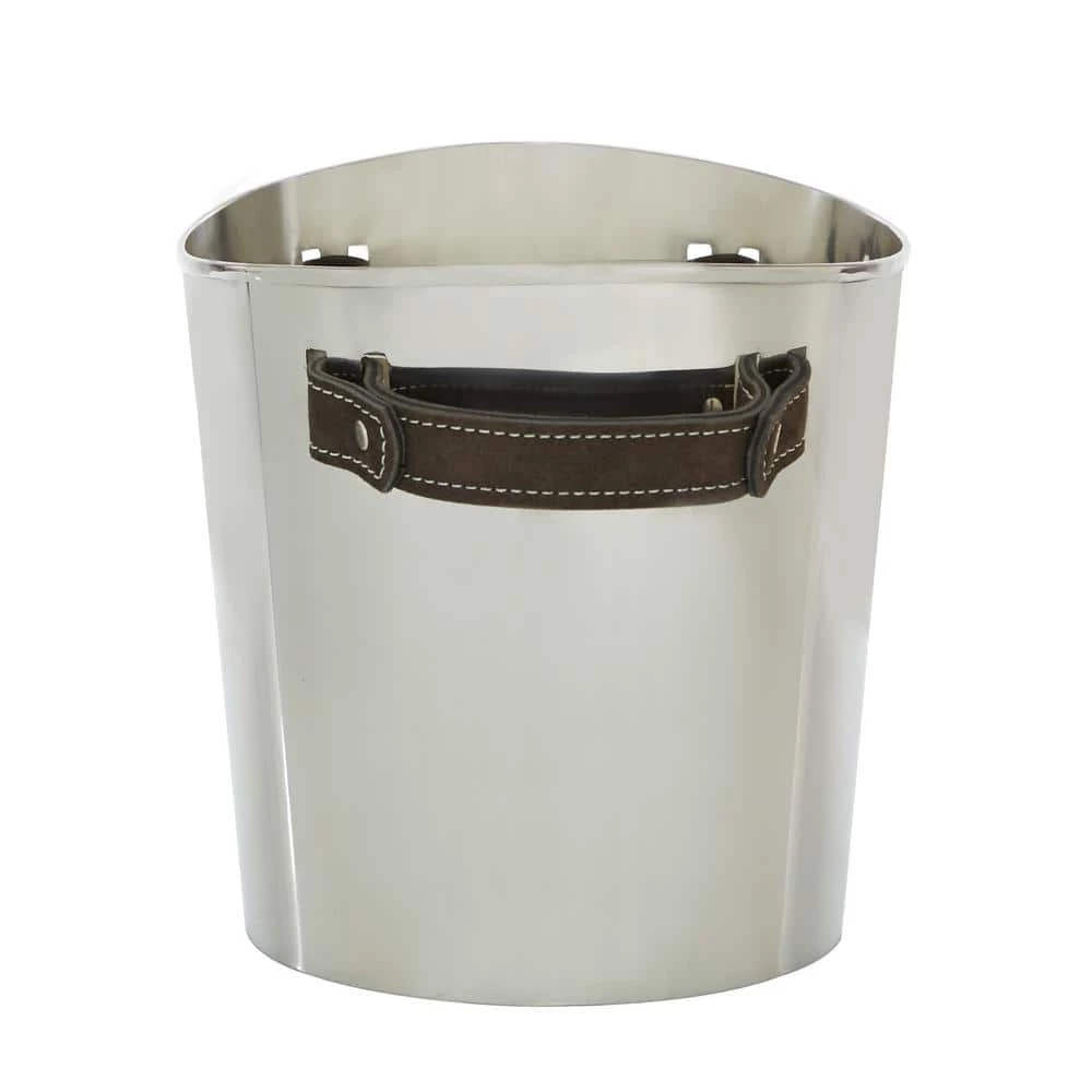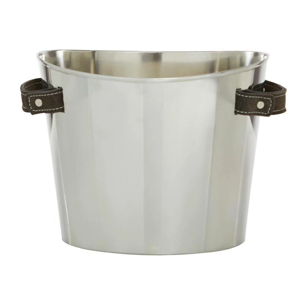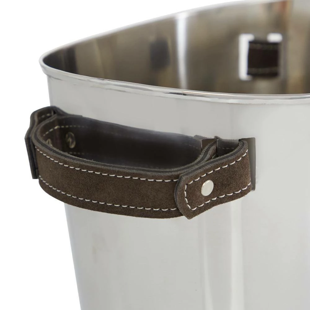 - This wine bucket holder is made of high-shine stainless steel and leather