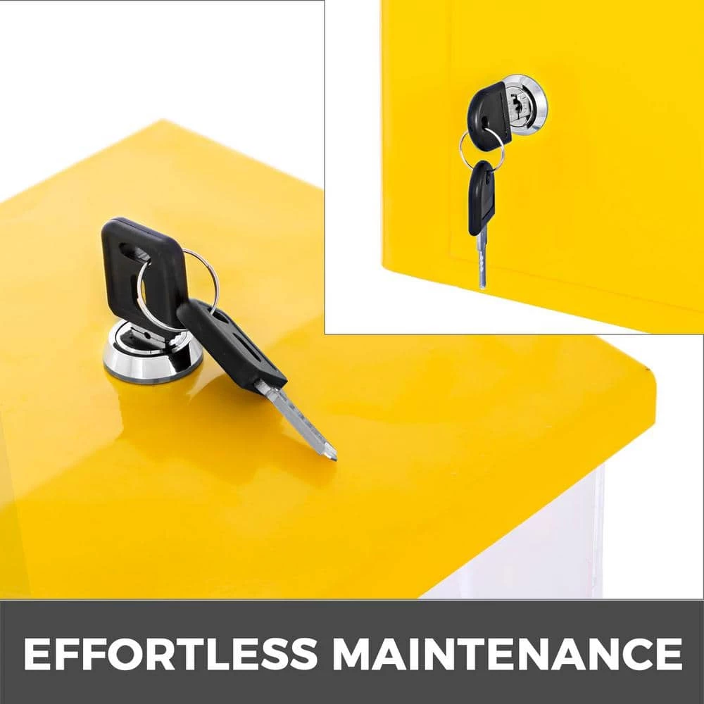 - Specifications: Color: Yellow, Material: Iron +PC + Aluminum Alloy, Capacity: 300pcs Gumballs/ 10 lbs of Candy Each Tank, Compartment Quantity: 3, Lock & Key: 3 Locks & 6 Keys, Gross Weight: 37.5 lbs., Item Dimension: 17.1 x 45.3 in., Leg Dimension: 23.2 x 4.3 in., Base Diameter: 16.5 in.