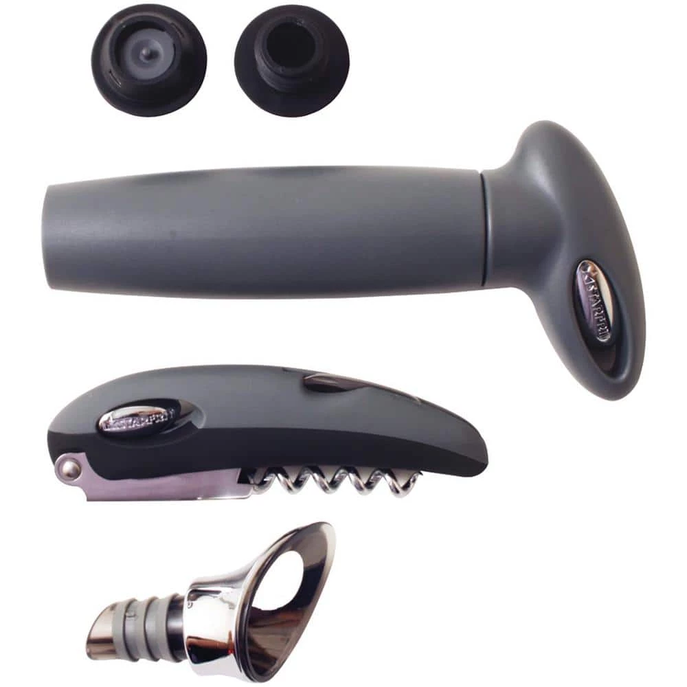 The Starfrit 3-Piece Wine Accessory Kit has just what a wine lover needs. The waiter’s corkscrew is the easiest way to remove corks. The drip-free pourer is air tight, resealable, leak proof and enables pouring in style with no spills. This kit even includes a wine saver to help preserve the life of the wine.