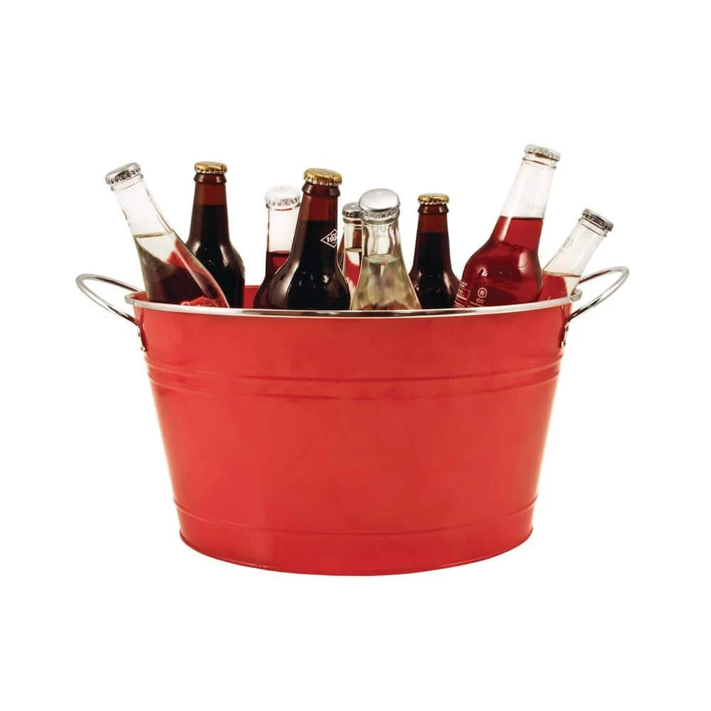 - Cold drinks for everyone – entertain whole party with handled drink bucket bright red painted finish with metal rim and handles make bucket stand out, and galvanized metal tub fits in with vintage-styled kitchens and events