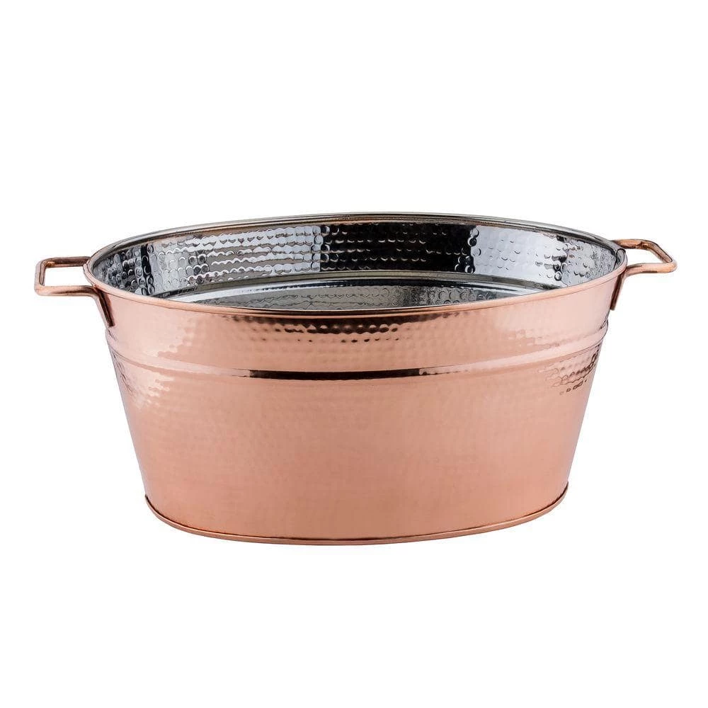 Get the party started in glamorous style with our copper plated party tub. It’s perfect for chilling multiple bottles of wine or your favorite bottled brew, Party’s over. Use it to store kindling wood by the fireplace or magazines beside your favorite easy chair.