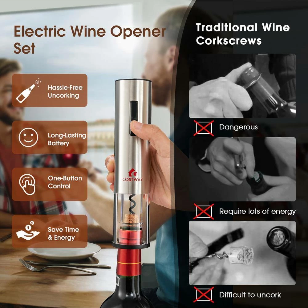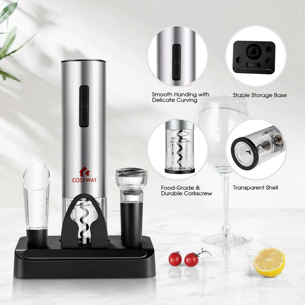 - Package Included:1 x Electric Wine Bottle Opener1 x Foil Cutter1 x Wine Pourer2 x Wine Stopper1 x Base1 x USB Cable1 x Instruction