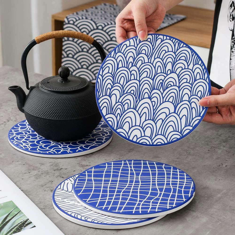 There is no denying that Meal time is one of the most important aspects of any culture.A warm family atmosphere requires different settings than a romantic evening for two.No matter who are eating with, and where you are eating, dinnerware set are crutial and closely related to our health. If you’re hosting a get-together or you simply want to enjoy a charcuterie plate on your own, a good coasters can add a touch of elegance to the experience. Simple blue pattern coasters can be easily matched with any style of home, it is a good choice for friends to home decor gifts.
