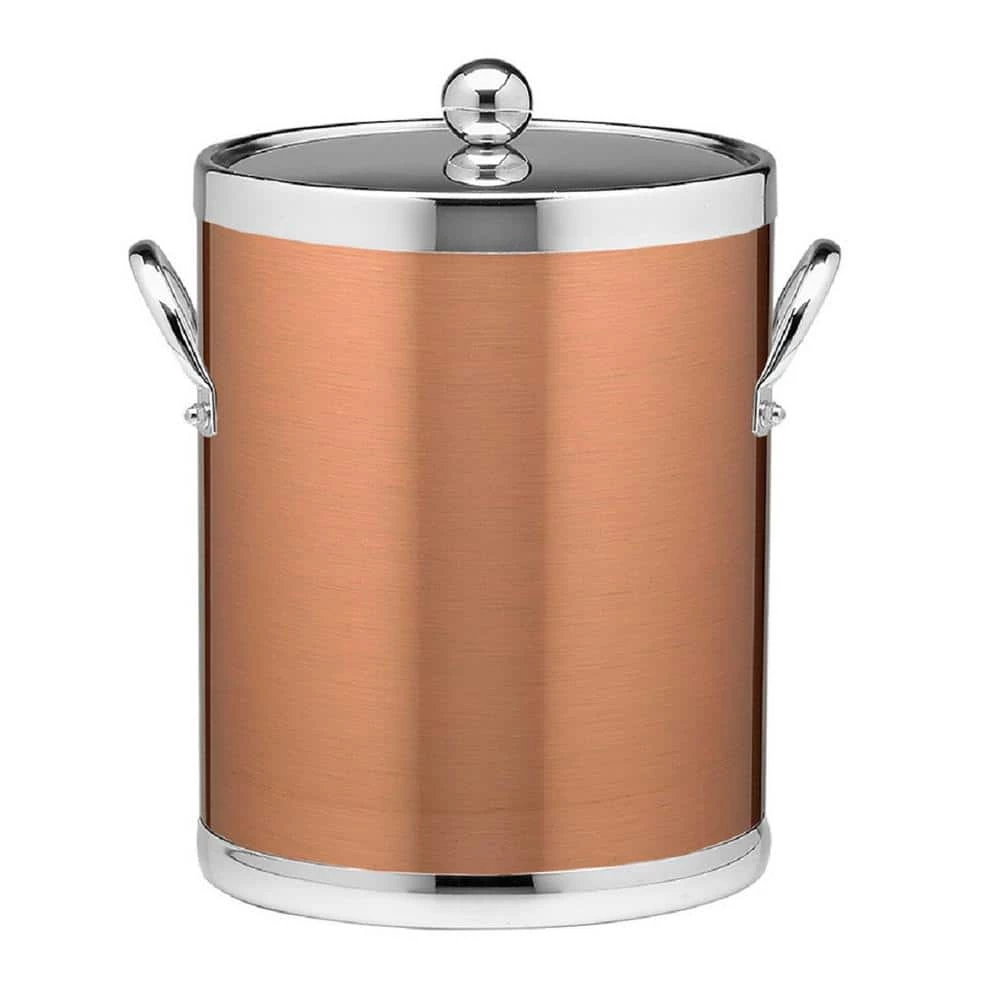 - Americano 5 qt. Brushed copper and chrome ice bucket with metal side handles and polished chrome lid