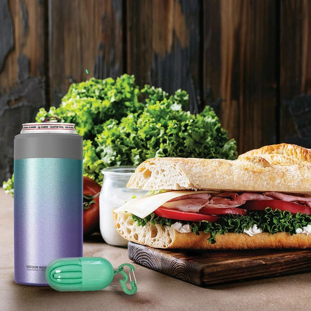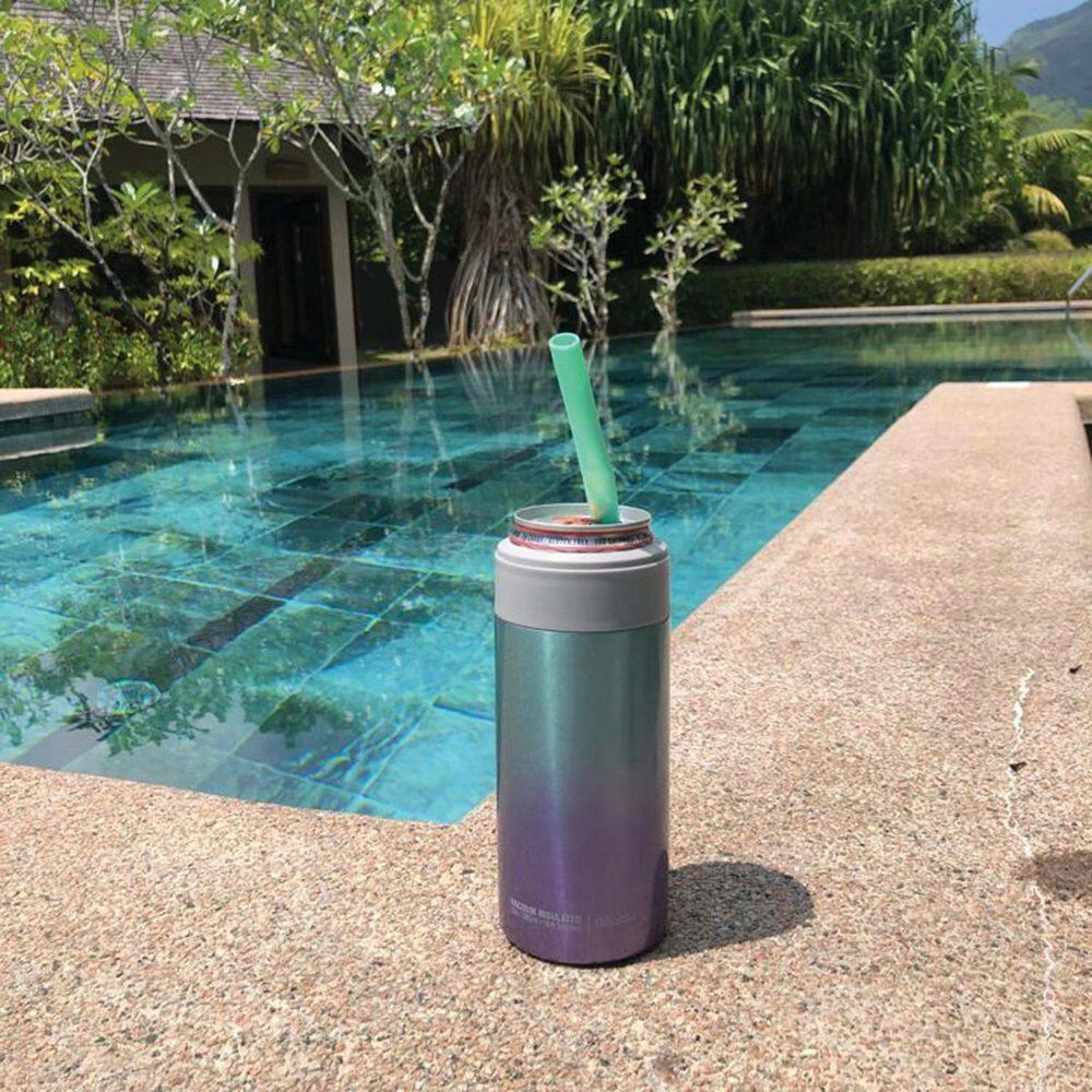 The Multicolored ASOBU Slim Can Kuzie fits all 12 oz. slim cans for hard seltzer, beer, and soda. Your favorite drink stays colder much longer. No more wet hands from condensation. The sleeve also comes with a silicone, bendable, reusable straw for drinking convenience.
