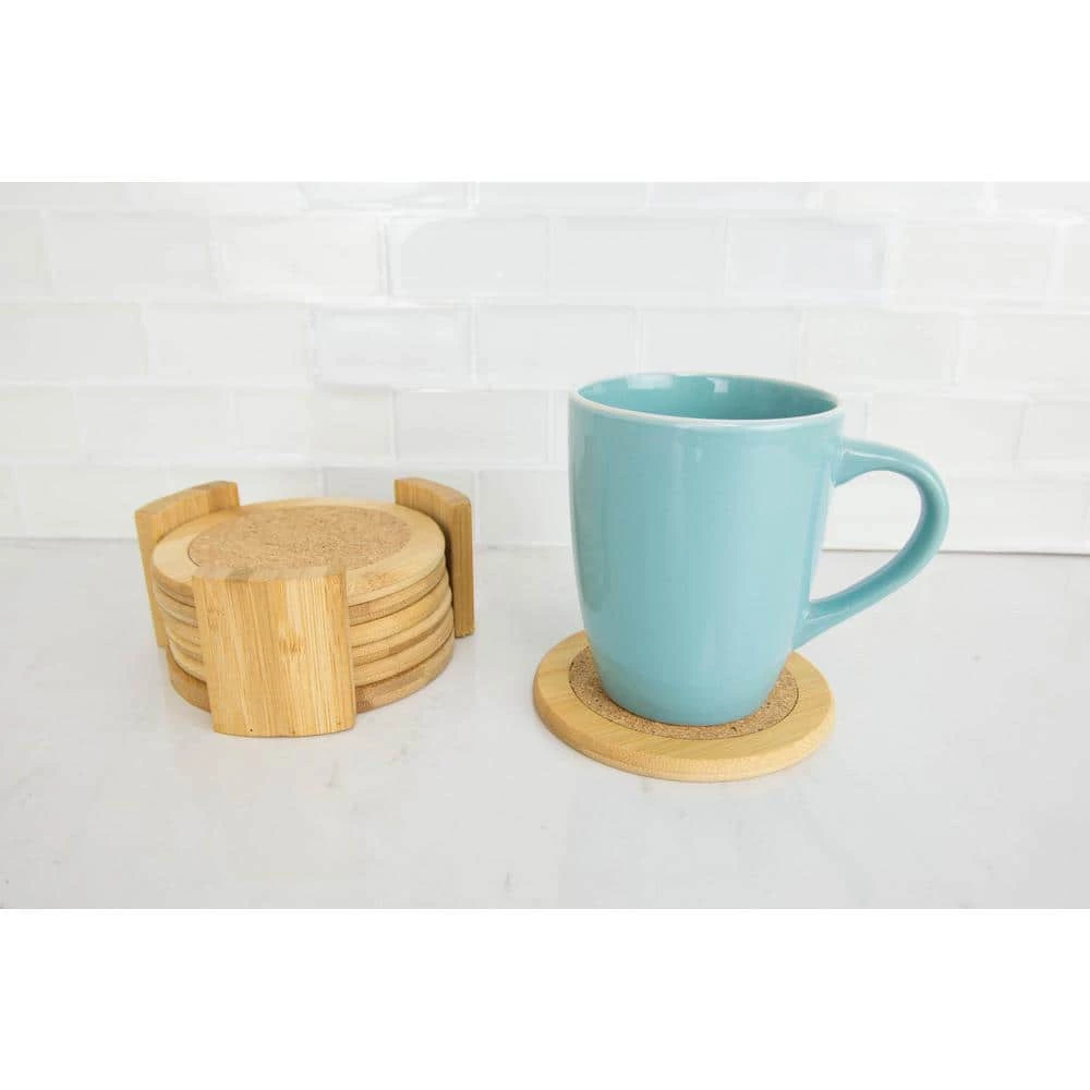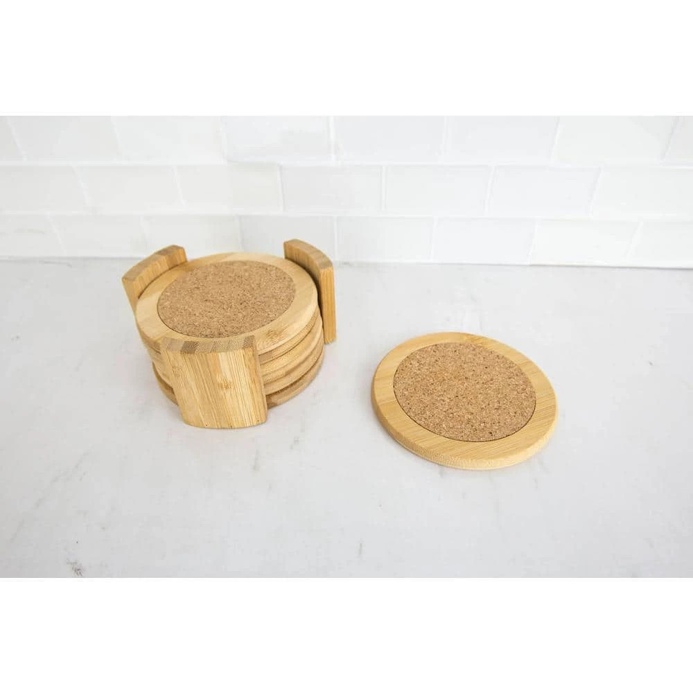 Set the foundation for a cozy dining experience by gracing your tabletops with this 6 piece bamboo coaster set. Crafted with a natural finish inspired by the great outdoors, it’s the provides the perfect haven to rest your favorite drinks. Each coasters measures 4.5 inches and is stackable for convenient storage. Holder for coasters included.