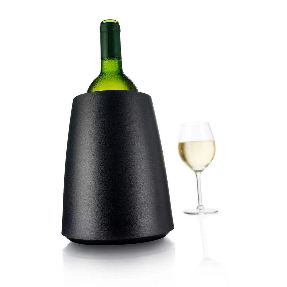 The stylish Elegant Cooler chills your wine within minutes, without ice. The cooler holds a re-usable cooling element that can chill a bottle within minutes and keep it cool for hours. Because the cooler does not use ice, your bottle won’t get wet and the label will stay intact. Store the cooling element flat in the freezer so they are always ready to go.