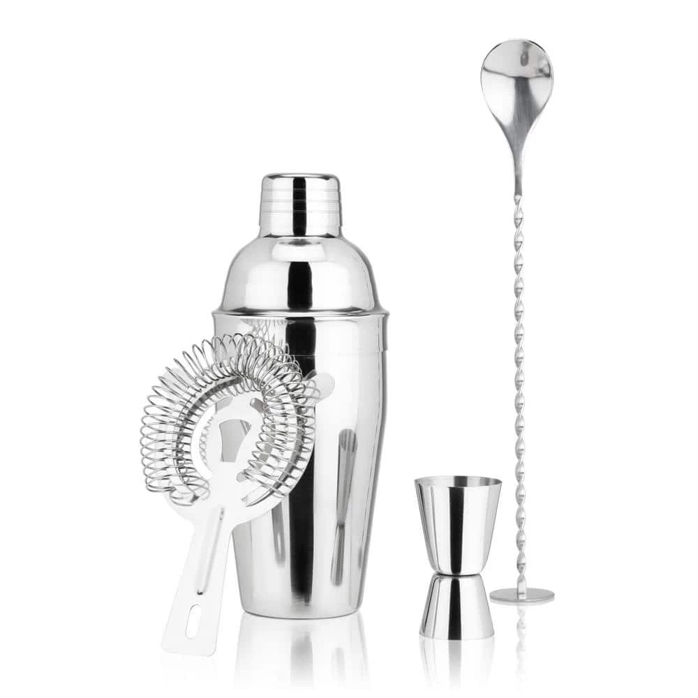 - Everything you need in a cocktail tool set – complete with a cobbler style shaker, double jigger, hawthorne strainer, and spoon that doubles as a muddler, stainless steel set includes all barware essentials and bar tool basics