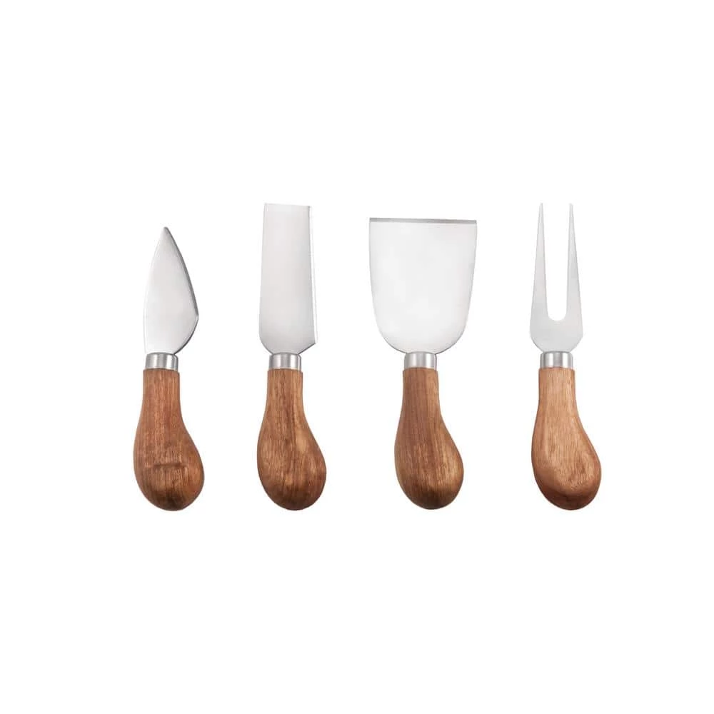The Rustic Farmhouse Gourmet Cheese Set is a beautiful collection of four assorted cheese tools. With stainless steel blades and rustic elegant acacia wood handles, this handsome set is perfect for entertaining, gift-giving and picnics. Stainless steel and acacia wood construction, Includes 4 different cheese tools, Handle length: 2.25 in. , Hand wash recommended, Makes a great gift.