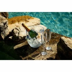 Mylar 5 Qt. Polished Chrome and Brass Ice Bucket with Track Handle and Metal Lid by Kraftware