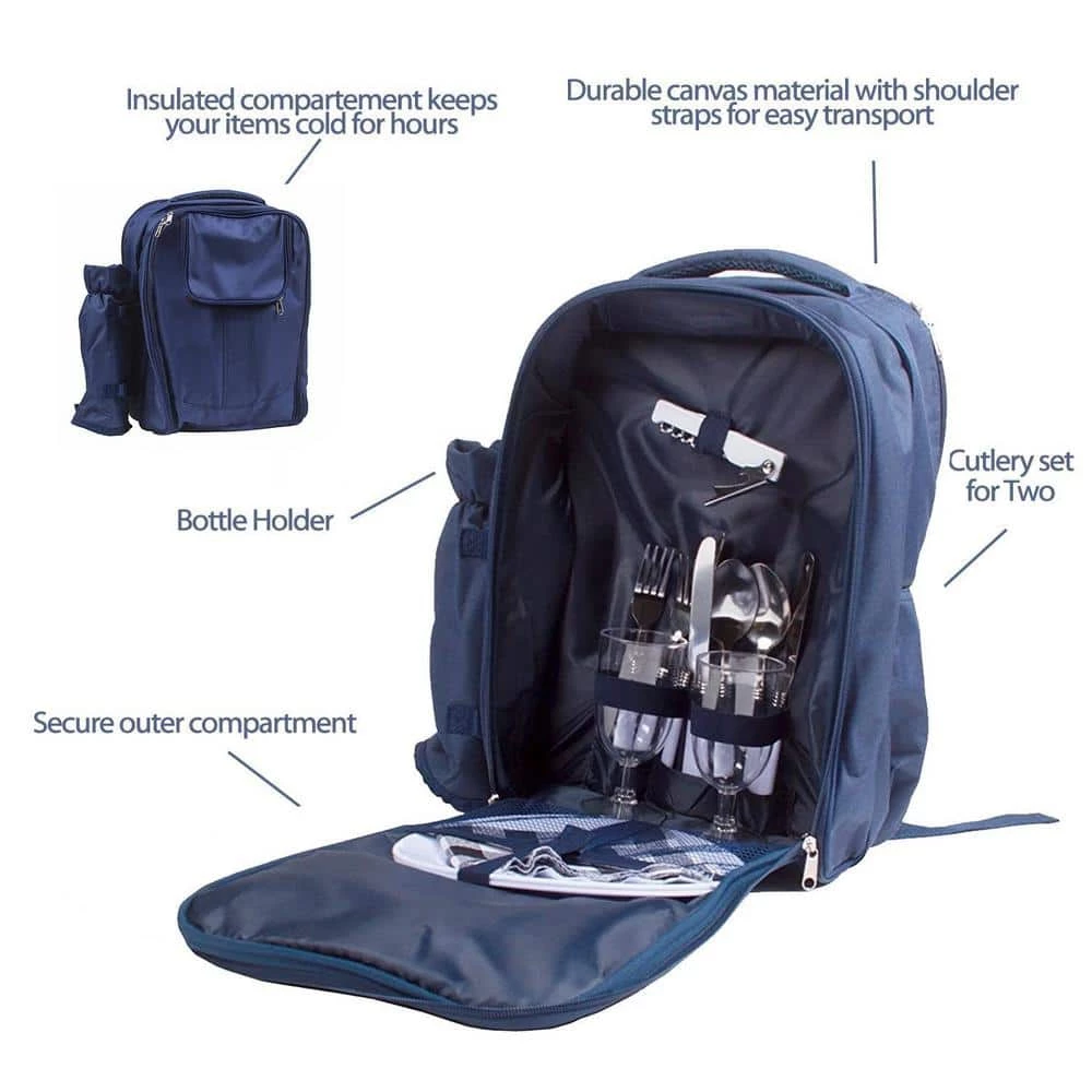 A perfect companion for picnics, camping, beach or any outdoor activity. Attractive large cooler made of poly-canvas fabric features thick PEVA lined insulated padding throughout, separate divided compartment to hold your wine bottles, easy access top panel with Velcro closure for wine, double shoulder straps, contrasting trim, zippered compartment for all of your picnic essentials.