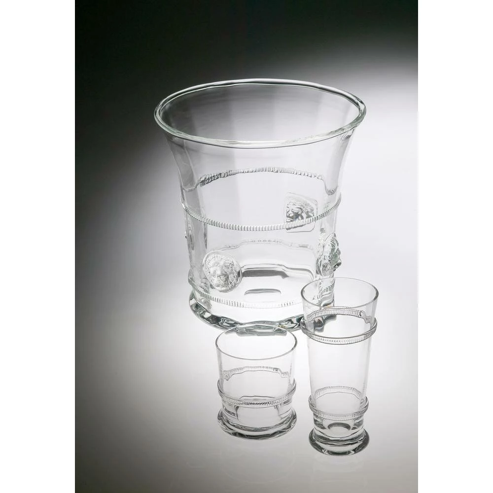 This is a very distinctive large clear ice bucket with Lions’ heads applied on four sides. A crystal rope is placed around the ice bucket to add interest. This is a truly impressive beverage cooler. It is handmade in Poland.