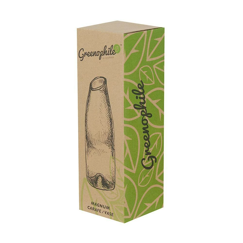 Perfect for decanting wine or serving any of your favorite beverages, the Oenophilia Magnum Carafe Wine Bottle is exquisitely crafted from recycled glass. The slanted mouth makes pouring easy, while the gorgeous greenophile hue adds contemporary flair. Perfect for decanting wine or serving water and other beverages at the table.