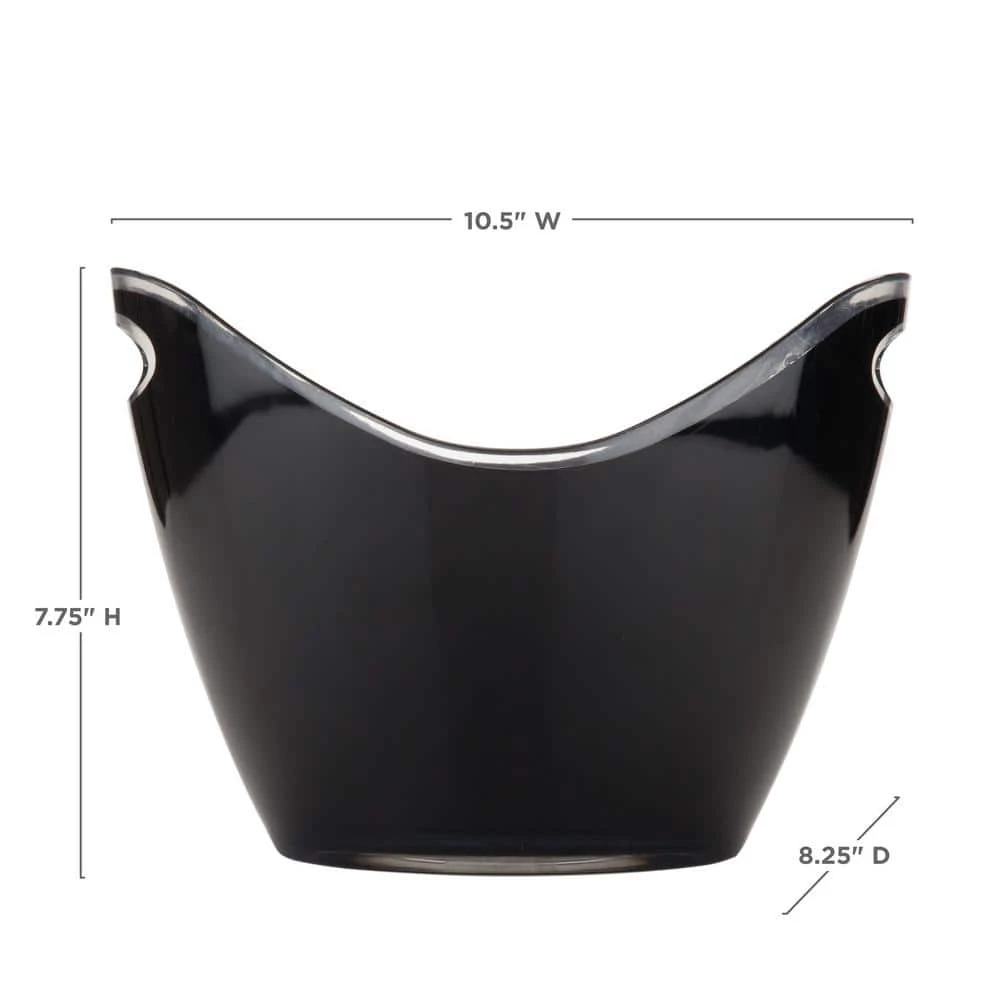 Roomy, featherlight and stylized, this modern ice bucket comes party-ready. Cut-out handles allow for easy mobility, so you can take it to the beach, to the tailgate, or just the backyard. Low-cut sides make it easy to swoop in and grab another bottle. Black and clear ice bucket Holds 2-standard-wine bottles 10.75 in. x 8 in. This streamlined, stylish ice bucket is perfect for keeping chilled-wine cool and close whether on the dinner table, at a picnic, or by the beach. True crafts beautiful, functional wares for the modern host–entertain in style with basics d1-better.