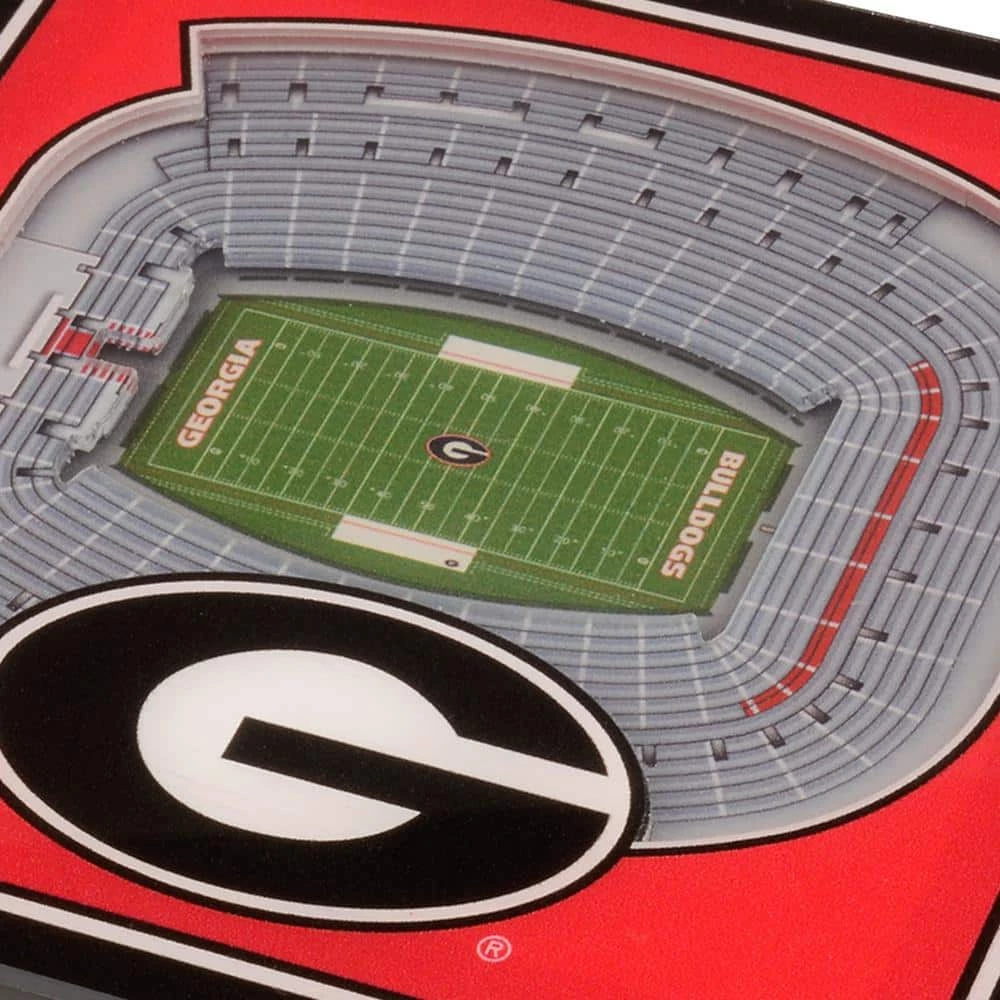 Score great seats for your glass. Introducing the Georgia Bulldogs StadiumViews 3D Drink Coasters. They are made up of multiple layers that form a 3D replica of your teams actual stadium – only a little bit smaller. The protective top layer is clear so you can get a great view of Sanford Stadium. Great for living rooms, fan caves and sports bars anywhere. Looks great even when not in use and sure to be a conversation piece around any table.