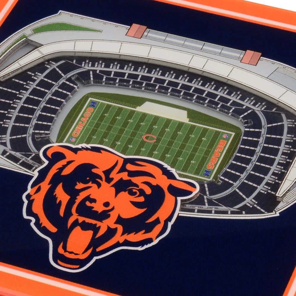 Score great seats for your glass. Introducing the Chicago Bears StadiumViews 3D Drink Coasters. They are made up of multiple layers that form a 3D replica of your teams actual stadium – only a little bit smaller. The protective top layer is clear so you can get a great view of Soldier Field. Great for living rooms, fan caves and sports bars anywhere. Looks great even when not in use and sure to be a conversation piece around any table.
