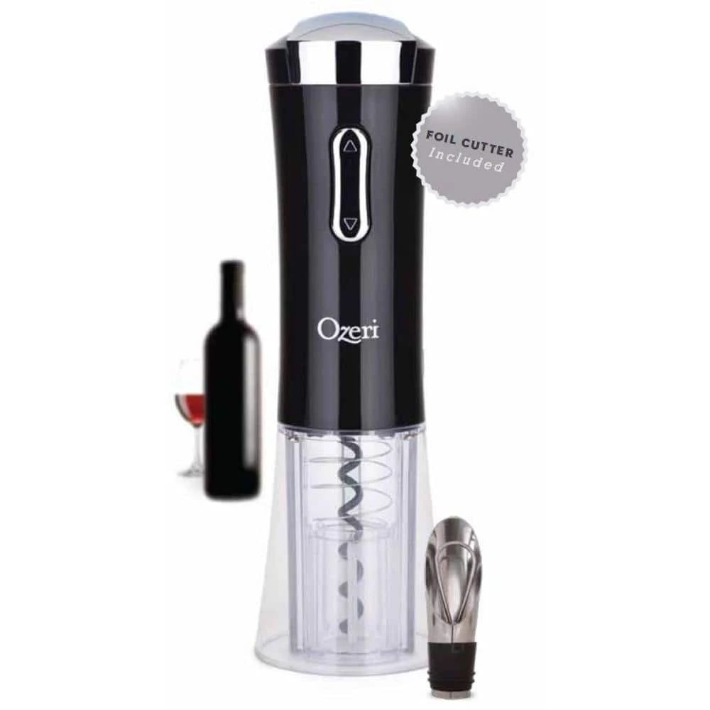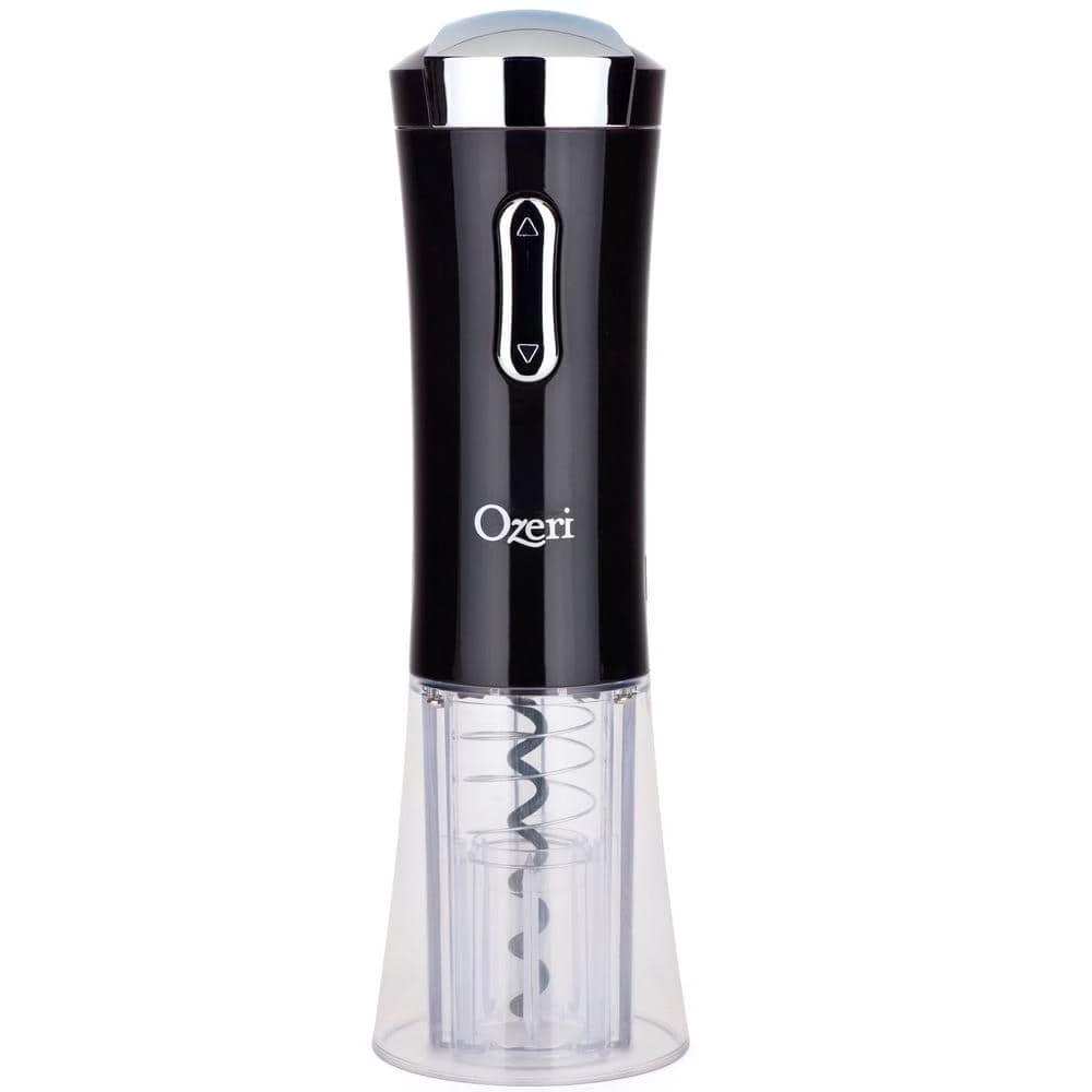 Available in Black, Red and Silver, the Ozeri Nouveaux II Electric Wine Opener combines a European inspired cordless design, integrated foil cutter and free wine pourer & stopper into one ultimate gift set. The Nouveaux II Electric Wine Opener’s new Li-Ion battery opens 100 bottles on a full charge. With the Ozeri Nouveaux II Electric Wine Opener, opening a bottle of wine is effortless, quick and entertaining. The Nouveaux II introduces a celebrated design incorporating elegant curves that allow it to stand vertically without the use of a separate base or stand. Designed for home and restaurant use, the Ozeri Nouveaux II Electric removes a wine bottle cork with the gentle push of a button. Unlike other electric wine openers, it features a transparent corkscrew shell that makes the cork removal process completely visible. When in use or while being recharged with the included compact adaptor, the Nouveaux II illuminates its transparent bottom shell with calming blue indicator lights. A completely cordless wine opener, the Nouveaux II opens both natural and synthetic corks, and features an ergonomic grip for easy handling. With its fashionable design, high quality materials and durable construction, The Ozeri Nouveaux II Electric Wine Opener is the ultimate companion to every wine bottle. No batteries required. 100% Satisfaction Guaranteed.