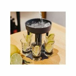 Plastic 6-Shot Liquor Dispenser Holder Set With 6-Shot Acrylic Glasses by Lexi Home