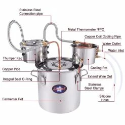 Alcohol Still 5 Gal. Stainless Steel Water Copper Alcohol Distiller Home Brewing Kit with Thumper Keg for DIY Wine by SEEUTEK