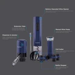 Black Air Pump Wine Bottle Opener with Foil Cutter, Vacuum Stopper, Aerator Pourer by Brentwood