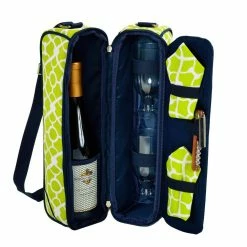 Sunset Trellis Green Wine Tote for 2 with Glasses by Unbranded