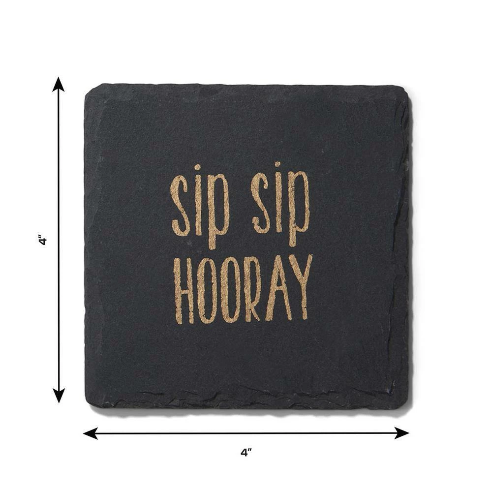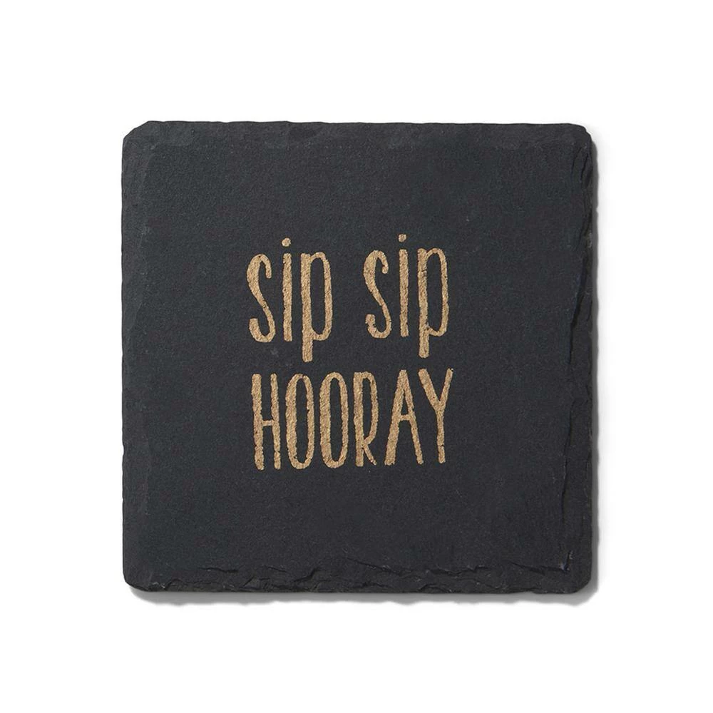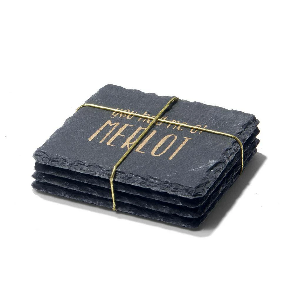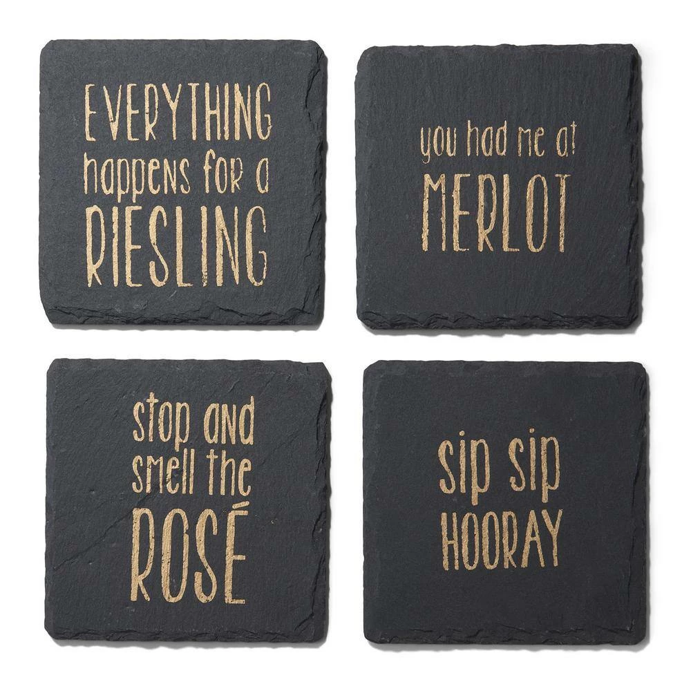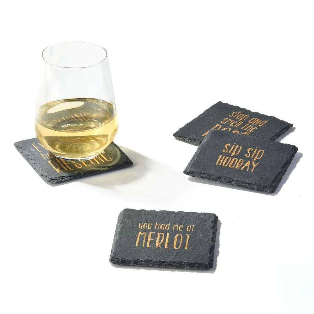 Avoid that awkward moment when guests place a glass dripping with water beads on your treasured coffee table, forcing you to run for a paper napkin. How By keeping a set of stylish Drink Coasters from American Atelier Slate Gold Set of 4-Coasters Square 4 x 4 in. handy Versatile and functional, these beverage coasters prevent water rings from ruining your furniture and a social faux pas from marring your friendship.