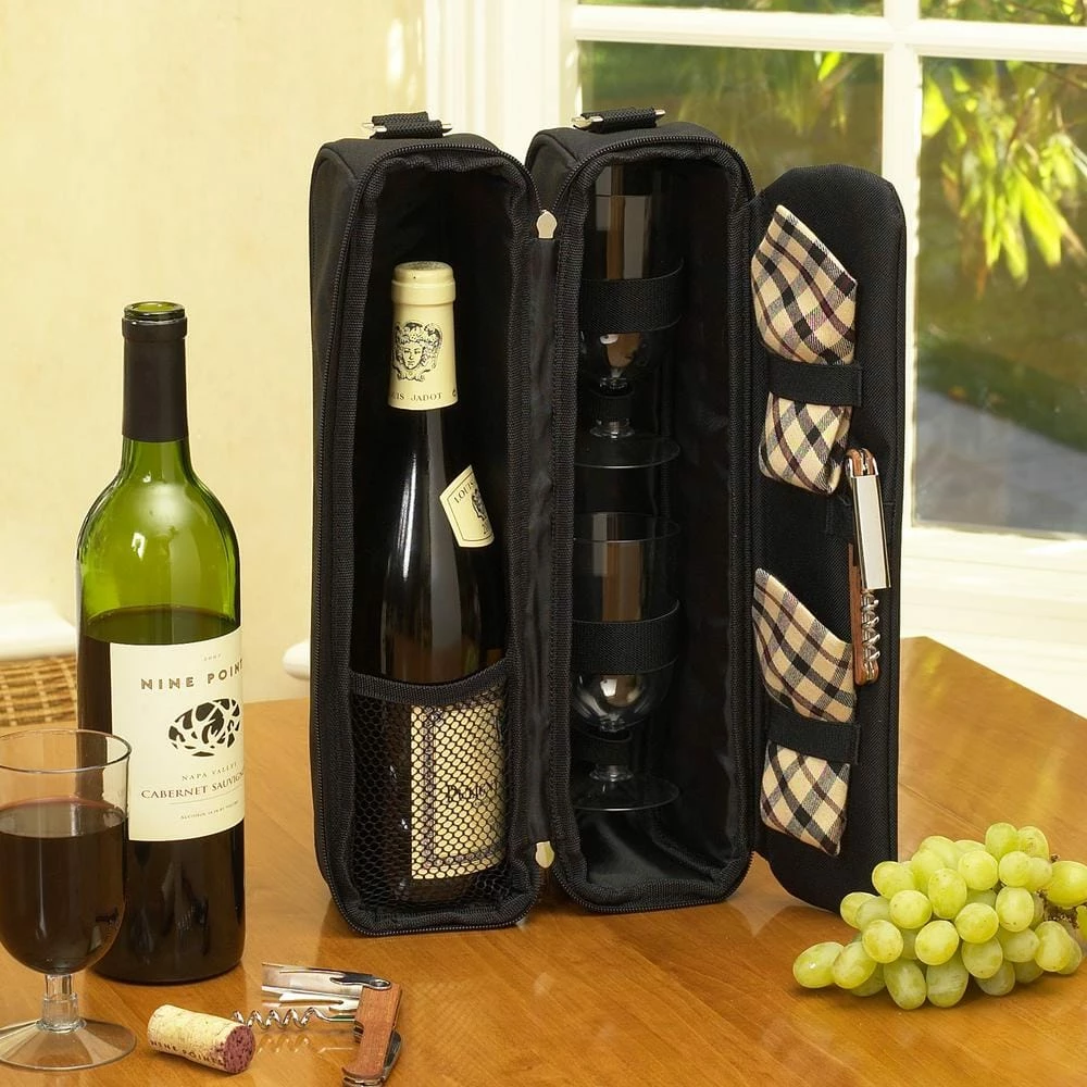 - Convertible – carry two bottles of wine by removing the two acrylic wine glasses