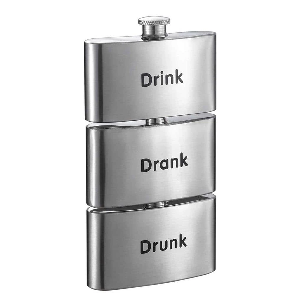 - Printed with “drink”, “drank” and “drunk” on the flasks