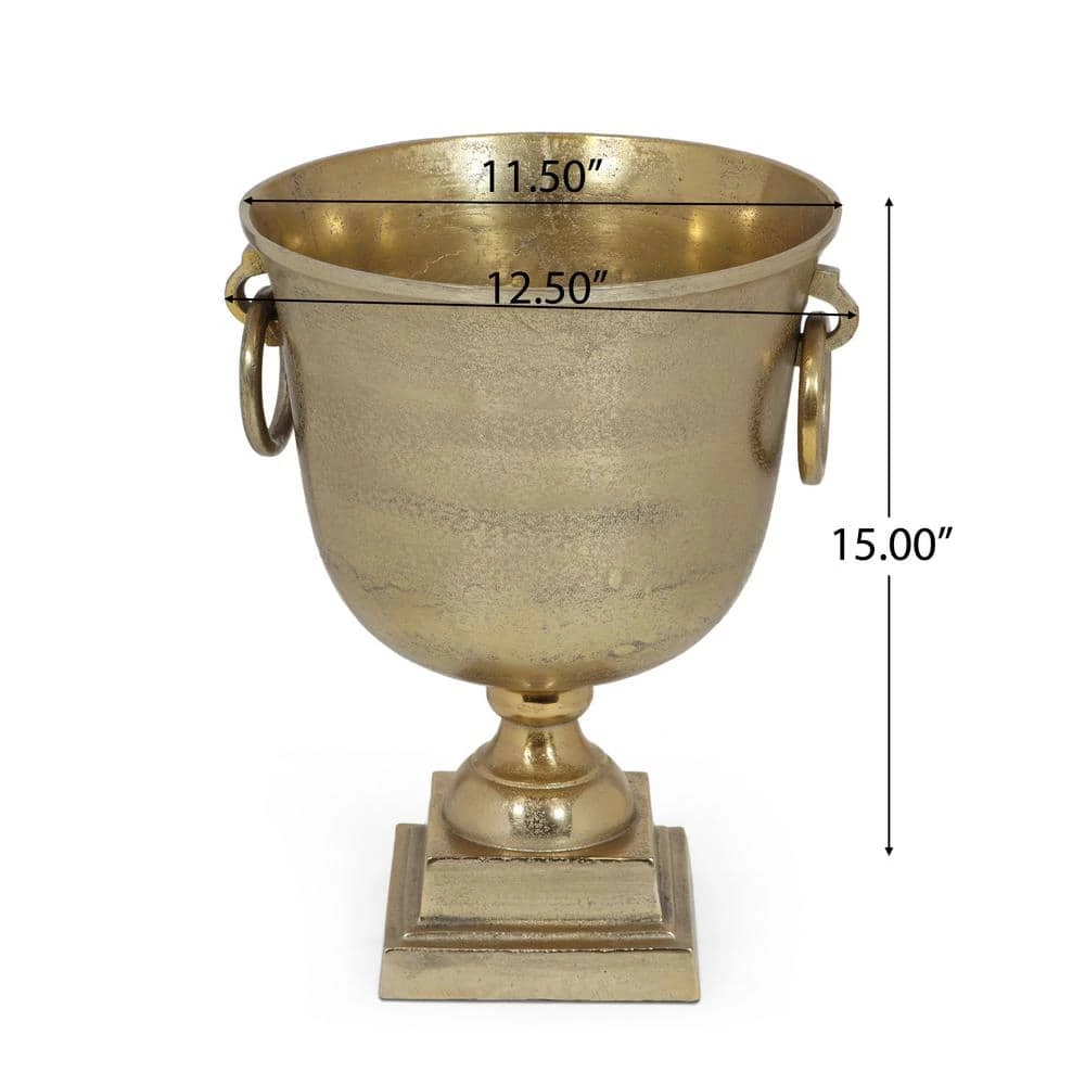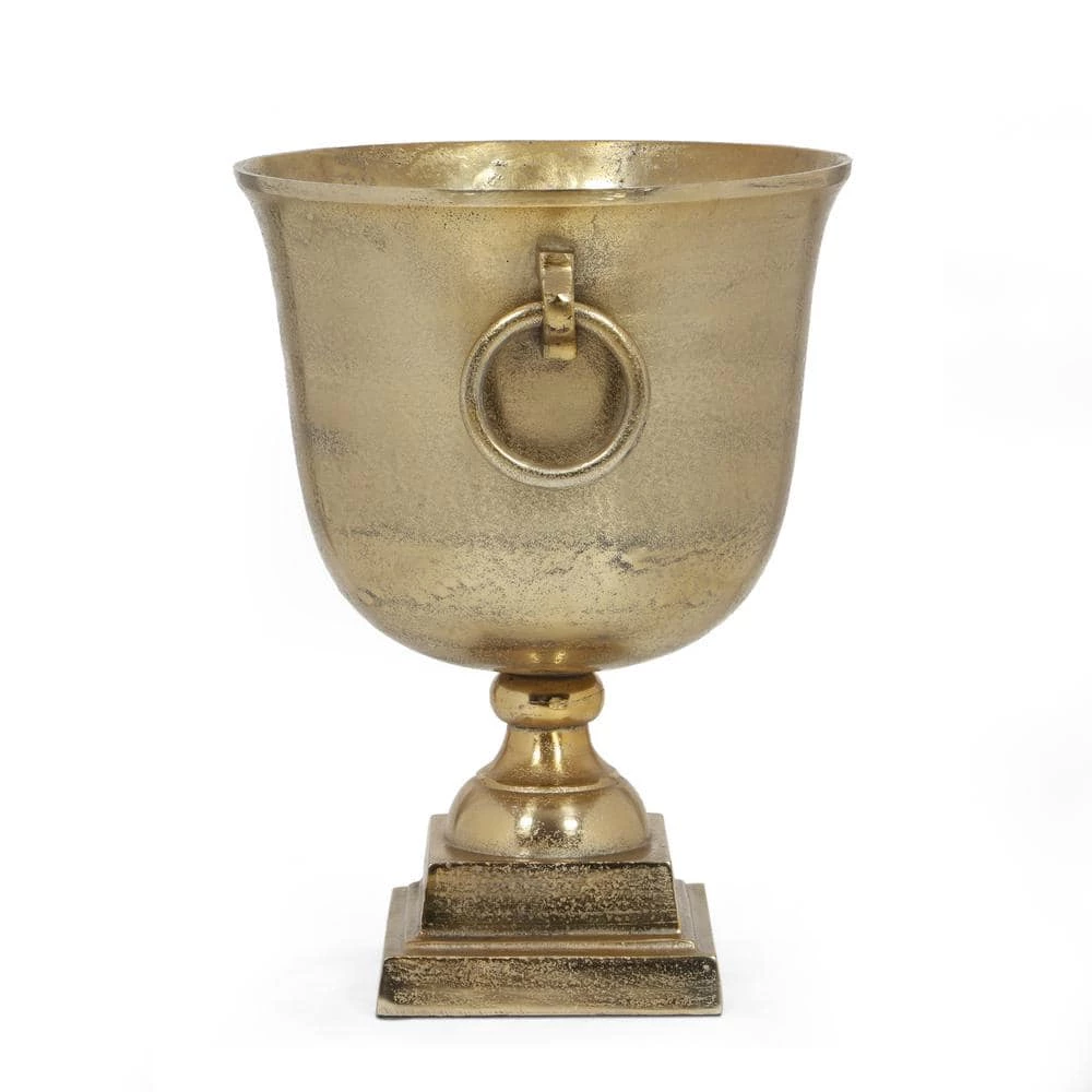 Start a dinner party off on the right foot with a refreshing glass of champagne. With a sleek aluminum structure and classic ring handles, our champagne cooler adds an element of elegance to any decor. This accessory perfectly holds your champagne bottles, soda water, or wine bottles with sophisticated ease. Finished with a vintage raw gold color, our cooler can act as a visually appealing centerpiece, bringing an antique charm to your home bar. Ready to impress, our champagne cooler will keep your guests thrilled with a chilled bubbly treat.