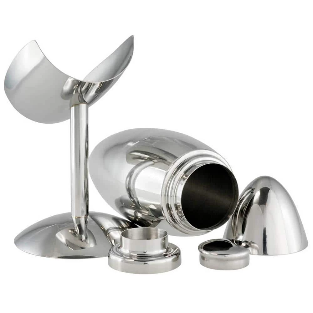 The Touchdown cocktail shaker from Visol constructed entirely out of stainless steel and looks incredibly sleek on its stand. Both modern and efficient, this shaker is sure to be a big hit. The mirror finish on the stainless steel looks stunning in any environment and would make a fantastic gift for those who love mixing drinks or throwing parties.