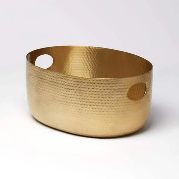 Add a bit of charm to any occasion from your next brunch buffet to a private table service for two. The Hammered Aluminum Beverage Tub has a beautiful copper finish for a striking look wherever it is placed. As an added bonus, this tub comes with cut outs on each side to make carrying a breeze.