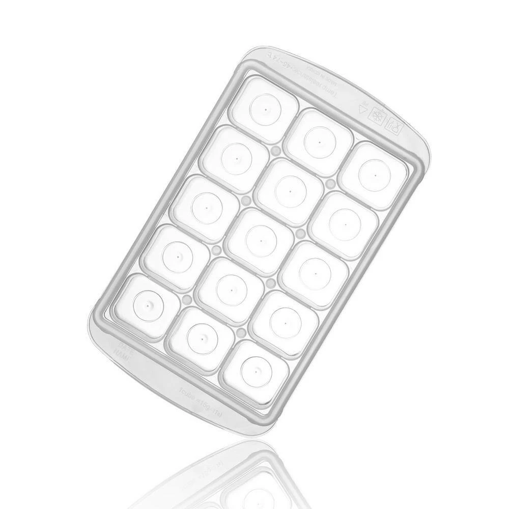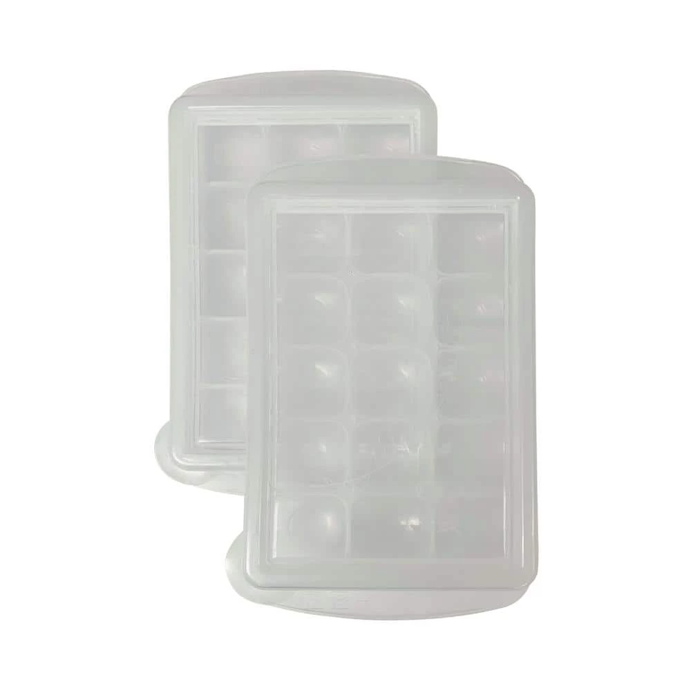 White Can store ice cubes, fruit infused ice cubes, desserts, homemade chocolate, and frozen baby food, ingredients, and more. Months are marked along one side of the lid, and dates are along the other side, both with slide bars to mark the dates g, oz, ml, lbs. are engraved on the side so it is convenient to measure Lid protects contents from losing its taste as well as from surrounding smells entering in. Locks moisture and oxygen from seeping in and spoiling foods. Retains freshness, including produce. Stackable and will not slip since they have lids Keeps refrigerator and freezer organized Made in Korea 0.53 oz. per compartment Product Dimensions: 9 in. x 5.5 in. x 1.2 in. Product Weight: 0.27 lbs. Material: PE Temperature Resistance: 49° F to 176° F. Warning: Extremely hot water may deform the product. Do Not place the product in the oven, microwave nor UV sterilizer. Dishwasher top rack safe only (Pack of 2).
