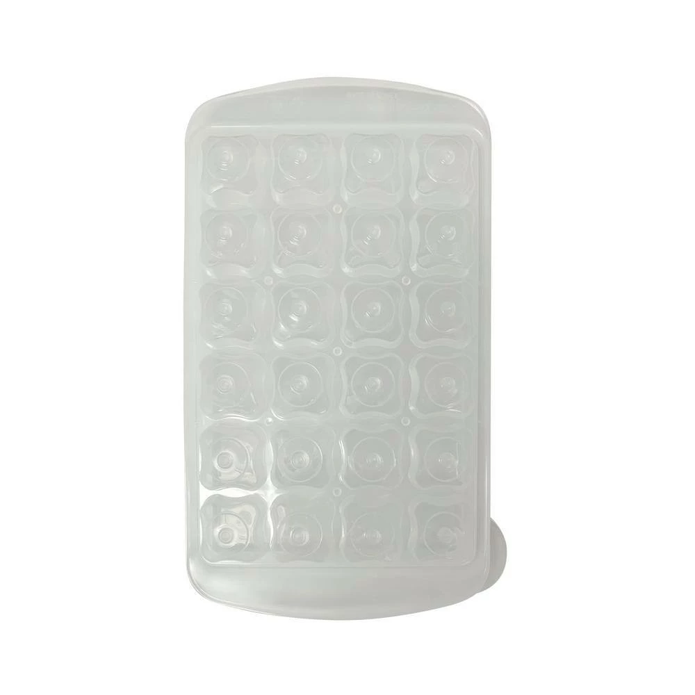 White Can store ice cubes, fruit infused ice cubes, desserts, homemade chocolate, and frozen baby food, ingredients, and more. Months are marked along one side of the lid, and dates are along the other side, both with slide bars to mark the dates g, oz, ml, lbs. are engraved on the side so it is convenient to measure Lid protects contents from losing its taste as well as from surrounding smells entering in. Locks moisture and oxygen from seeping in and spoiling foods. Retains freshness, including produce. Stackable and will not slip since they have lids Keeps refrigerator and freezer organized Made in Korea 0.26 oz. per compartment Product Dimensions: 9 in. x 5.5 in. x 1 in. Product Weight: 0.24 lbs. Material: PE Temperature Resistance Tolerance: 49°F to 176°F Warning: Extremely hot water may deform the product. Do Not place the product in the oven, microwave nor UV sterilizer. Dishwasher top rack safe only (Pack of 4).