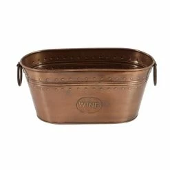 4 qt. 4-Bottle Bronze Metal Wine Cooler with Ring Handle and Studded Nail Accents by Benjara