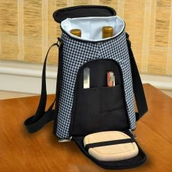 2-Bottle Houndstooth Insulated Wine Tote and Cheese Set by Unbranded