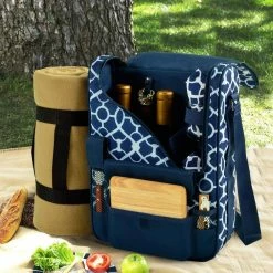 Bordeaux Wine and Cheese Cooler Bag with Glass Wine Glasses and Blanket by Unbranded