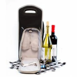 Bordeaux Wine and Cheese Cooler Bag with Glass Wine Glasses Equipped for 2 by Unbranded